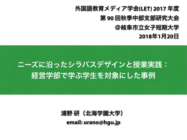 University Press. • Ellis, R., & Shintani, N. (2014). Exploring language pedagogy through second language acquisition research. London: Routledge. • Long, M. H. (2005). Methodological issues in learner needs analysis. In M. H. Long (ed.), Second language needs analysis (pp. 19–76). Cambridge University Press. • Long, M. (2015). Second language acquisition and task-based language teaching. Chichester, UK: Wiley-Blackwell. • দଜণل. (2012). ʰλεΫΛ׆༻ͨ͠ӳޠतۀͷσβΠϯʱ౦ژ: େमؗॻళ. • দଜণل. (2017). λεΫɾϕʔεͷൃͱݴޠڭҭͷํ๏. দଜণل. (ฤ). ʰλεΫɾ ϕʔεͷӳޠࢦಋ: TBLTͷཧղͱ࣮ફʱ(pp. 5–36). ౦ژ: େमؗॻళ. • ౻Ӭଞ. (2007). ւಓͷ࢈ۀքʹ͓͚Δӳޠͷχʔζ.ʢࡒʣւಓ։ൃڠձॿݚڀ ฏ17ʙ18ใࠂॻ. • Ԙय़. (2012). ʰϏδωεӳจϝʔϧೖ: ղઆͱԋशʱ[Kindle] Retrieved from: https://www.amazon.co.jp/dp/B0155VGNKO/ • Ӝݚ. (2017). େֶͰͷӳޠࢦಋͷߟ͑ํͱ. দଜণل. (ฤ). ʰλεΫɾϕʔεͷӳ ޠࢦಋ: TBLTͷཧղͱ࣮ફʱ(pp. 201–223). ౦ژ: େमؗॻళ. Ҿ༻จݙ