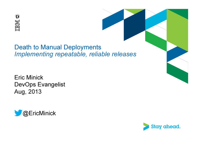 Manual deployments are terrible because they they ask people to be as repeatable as machines. This presentation looks at why manual deployments fail, what automation brings to the table, and how to build on top of automated deployments.