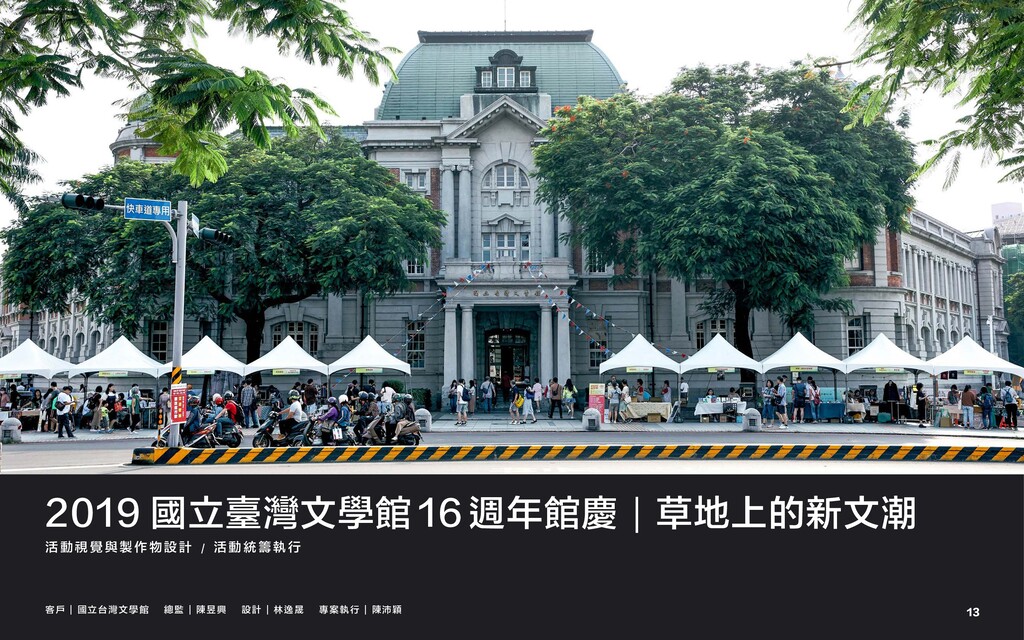 作 物 設 計 / 活 動 統 籌 執 行 客戶 | 國立台灣文學館 總監 | 陳昱興 設計 | 林逸晟 專案執行 | 陳沛穎 13
