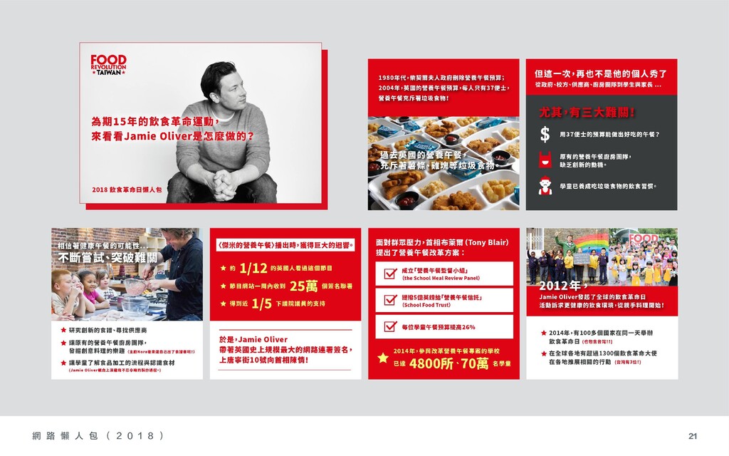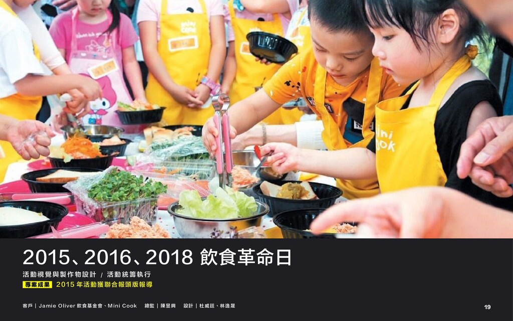 作 物 設 計 / 活 動 統 籌 執 行 專案成果 2015 年活動獲聯合報頭版報導 客戶 | Jamie Oliver 飲食基金會、Mini Cook 總監 | 陳昱興 設計 | 杜威廷、林逸晟 19