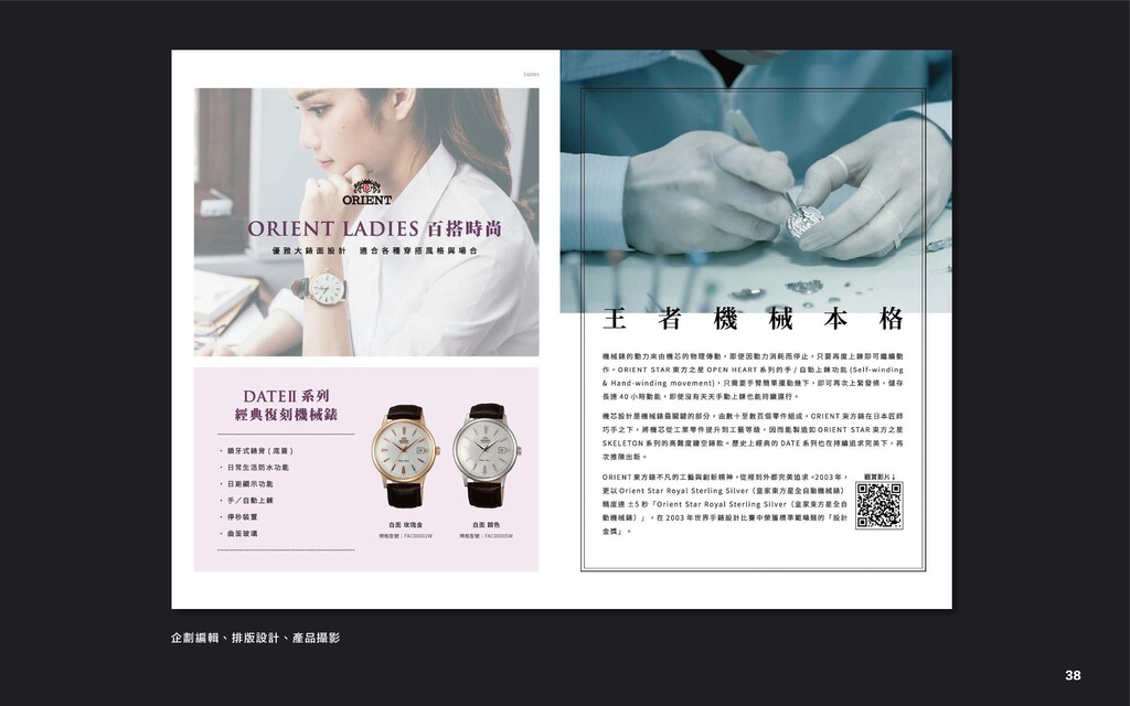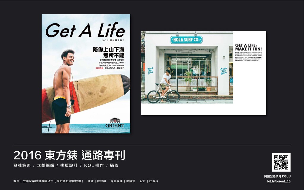 編 輯 / 排 版 設 計 / KOL 操 作 / 攝 影 客戶 | 立達企業股份有限公司 ( 東方錶台灣總代理 ) 總監 | 陳昱興 專案經理 | 謝宛恬 設計 | 杜威廷 完整型錄請見 ISSUU bit.ly/orient_16