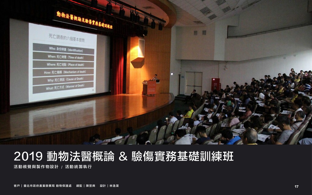 2019 動物法醫概論 & 驗傷實務基礎訓練班 活 動 視 覺 與 製
