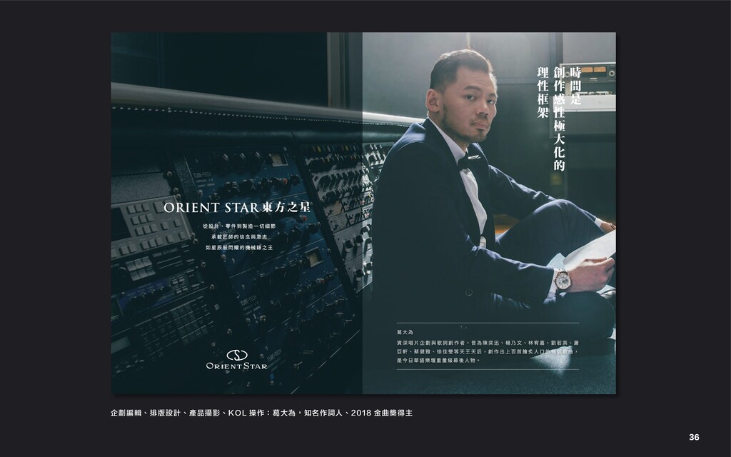 6 / 2 4 企劃編輯、排版設計、產品攝影、KOL 操作:葛大為,知名作詞人、2018 金曲獎得主 36