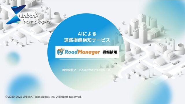 AIによる 道路損傷検知サービス 株式会社アーバンエックステクノロジーズ © 2020-2023 UrbanX Technologies, Inc. All Rights