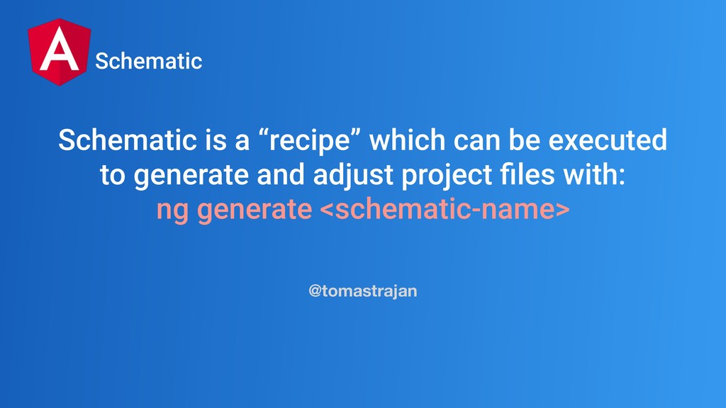 and adjust project files with: ng generate <schematic-name> @tomastrajan Schematic