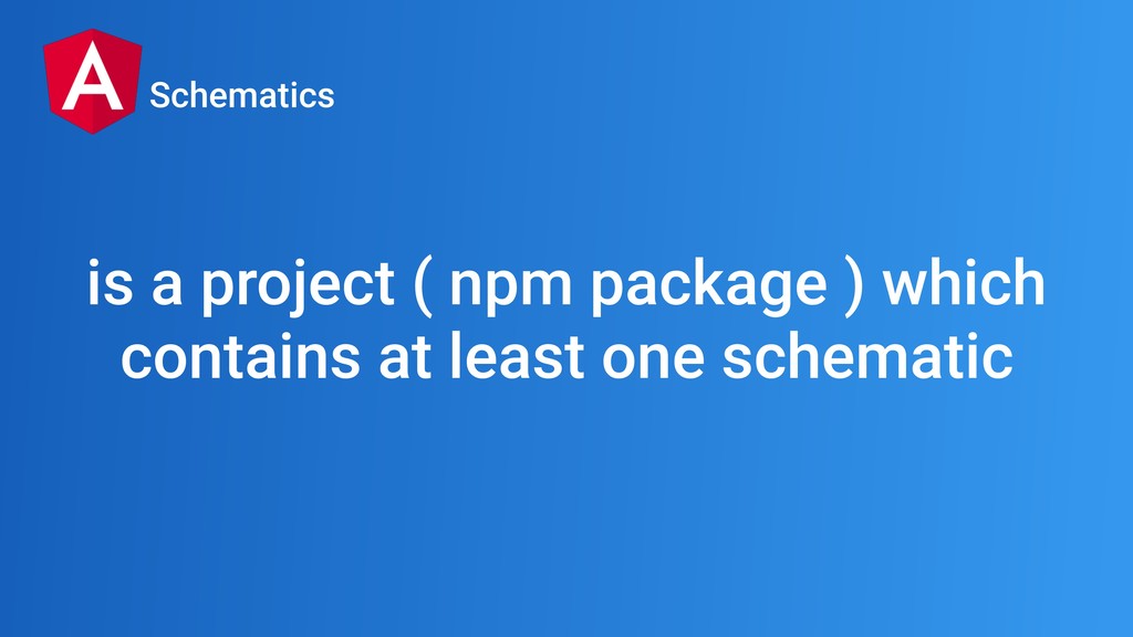 $ schematics blank —name=<name> $cd to/path/of/new/schematic Install Schematics $ npm install @schematic/angular Schematics