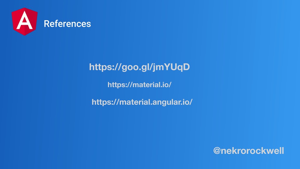 https://goo.gl/jmYUqD References https://material.io/ https://material.angular.io/ @nekrorockwell