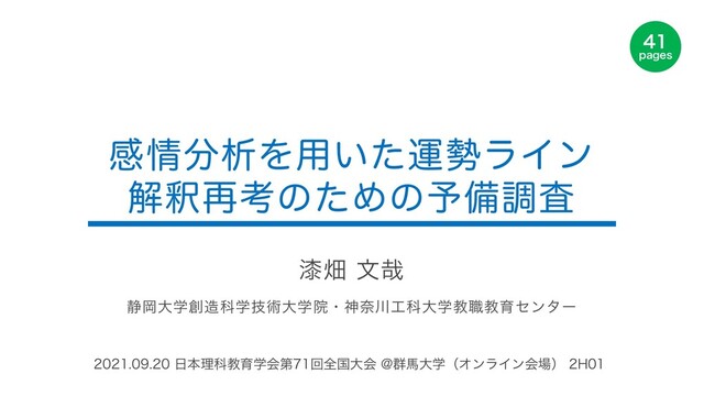 2021年9月20 日(月)本理科教育学会第71回全国大会 @群馬大学(オンライン会場) 2H01で発表した内容です。