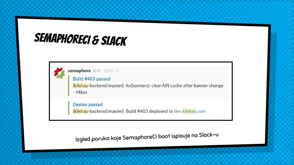 SemaphoreCI & slack Izgled poruka koje SemaphoreCI boot ispisuje na