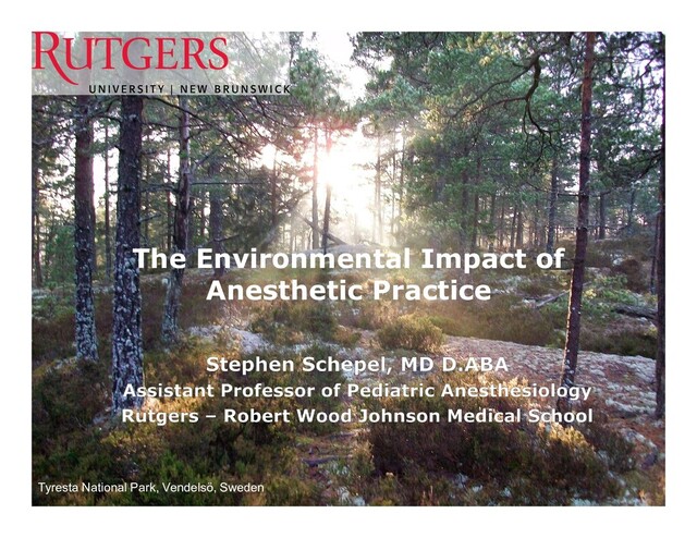 in plastic and hand surgery. Plastic Surgery. 2015;23(4). doi:10.4172/plastic-surgery.1000941. • Andersen MPS, Nielsen OJ, Wallington TJ, Karpichev B, Sander SP. Assessing the Impact on Global Climate from General Anesthetic Gases. Anesthesia & Analgesia. 2012;114(5):1081-1085. doi:10.1213/ane.0b013e31824d6150. • Azouz S, Boyll P, Swanson M, Castel N, Maffi T, Rebecca AM. Managing barriers to recycling in the operating room. The American Journal of Surgery. 2019;217(4):634-638. doi:10.1016/j.amjsurg.2018.06.020. • Goldberg ME, Vekeman D, Torjman MC, Seltzer JL, Kynes T. Medical Waste in the Environment. Survey of Anesthesiology. 1997;61(4):253. doi:10.1097/00132586-199708000-00065. • Ishizawa Y. General Anesthetic Gases and the Global Environment. Anesthesia & Analgesia. 2011;112(1):213-217. doi:10.1213/ane.0b013e3181fe02c2. • Holzman, RS. Size DOES Matter: A Calculation of Differences Between Children and Adults. Boston Children’s Hospital/Harvard Medical School, 2000. • Mankes RF. Propofol Wastage in Anesthesia. Anesthesia & Analgesia. 2012;114(5):1091-1092. doi:10.1213/ane.0b013e31824ea491. • Ryan S, Sherman J. Sustainable Anesthesia. Anesthesia & Analgesia. 2012;114(5):921-923. doi:10.1213/ane.0b013e31824fcea6. • Sherman J, Le C, Lamers V, Eckelman M. Life Cycle Greenhouse Gas Emissions of Anesthetic Drugs. Anesthesia & Analgesia. 2012;114(5):1086-1090. doi:10.1213/ane.0b013e31824f6940. • Sherman JD, Ryan S. Ecological Responsibility in Anesthesia Practice. International Anesthesiology Clinics. 2010;48(3):139-151. doi:10.1097/aia.0b013e3181ea7587. • Thiel CL, Eckelman M, Guido R, et al. Environmental impacts of surgical procedures: life cycle assessment of hysterectomy in the United States. Environ Sci Technol. 2015;49(3):1779–1786. doi:10.1021/es504719g