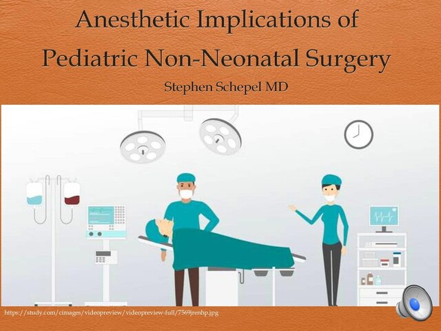 can cause thoracic insufficiency, impaired lung development, and consequently pulmonary hypertension Surgical options: posterior spinal fusion (most common) and vertical expandable prosthetic rib Long, painful procedures with potential for blood loss, hemodynamic instability, positioning injury, pneumothorax Postoperative vision loss uncommon but devastating Anesthetic: General, prone positioning, arterial line and large bore access, maintenance with TIVA due to neuromonitoring. Multimodal analgesia with IT morphine/PO gabapentin, etc becoming more common