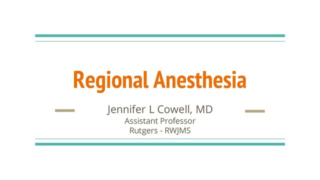 Orthopedic population • Surgical anesthesia ◦ Orthopedics ◦ Vascular ◦ Podiatry • Increased hemodynamic stability compared to neuraxial • Unilateral • Lumbosacral plexus ◦ Sciatic and femoral nerves ◦ All joints innervated by both • May alter patient’s dispo plan ◦ Motor weakness ◦ Rehab vs home ◦ Overnight admission