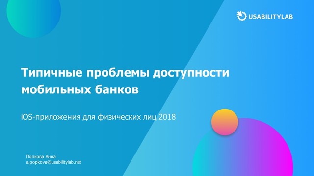 Анна Попкова на бизнес-завтраке USABILITYLAB (24 апреля 2018), посвященному юзабилити-рейтингу мобильных банковских приложений, рассказала о самых распространенных проблемах доступности