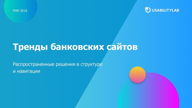 Презентация с выступления Андрея Клёца, проектировщика USABILITYLAB, на РИФ-2018. Разбор актуальных трендов банковских сайтов: двухуровневые меню, баннерные карусели, попытки совладать с переизбытком информации.