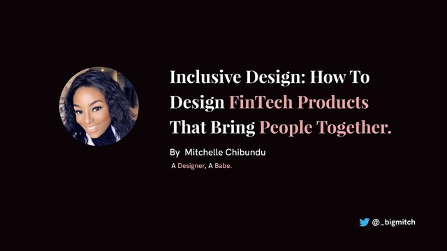 WHY SHOULD YOU CARE? Accessible No barriers @_bigmitch Inclusive Design? Bespoke Everyone feels a sense of belonging, like the product was created specifically for them