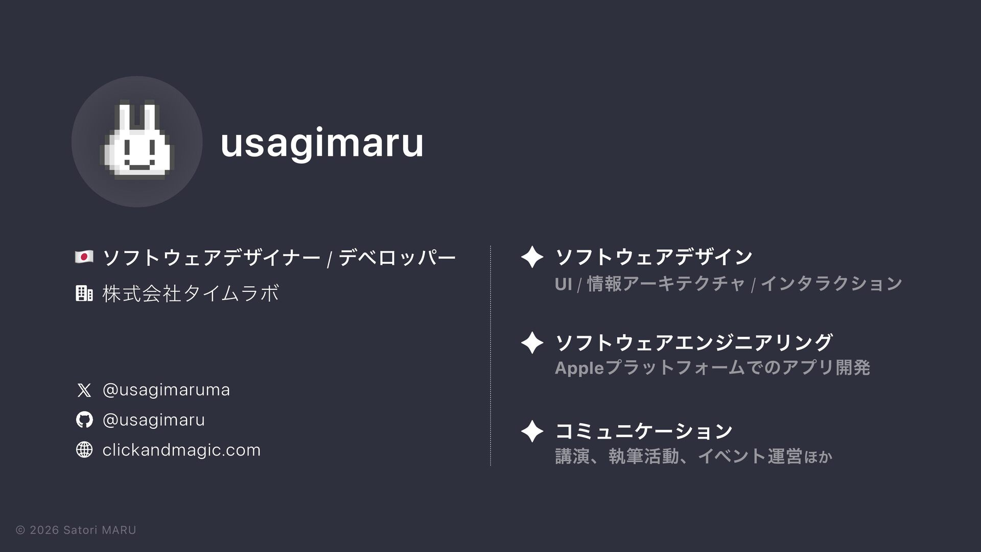 1. © 2026 Satori MARU ιϑτ΢ΣΞσβΠφʔ / σϕϩούʔ usagimaru גࣜձࣾλΠϜϥϘ @usagimaru