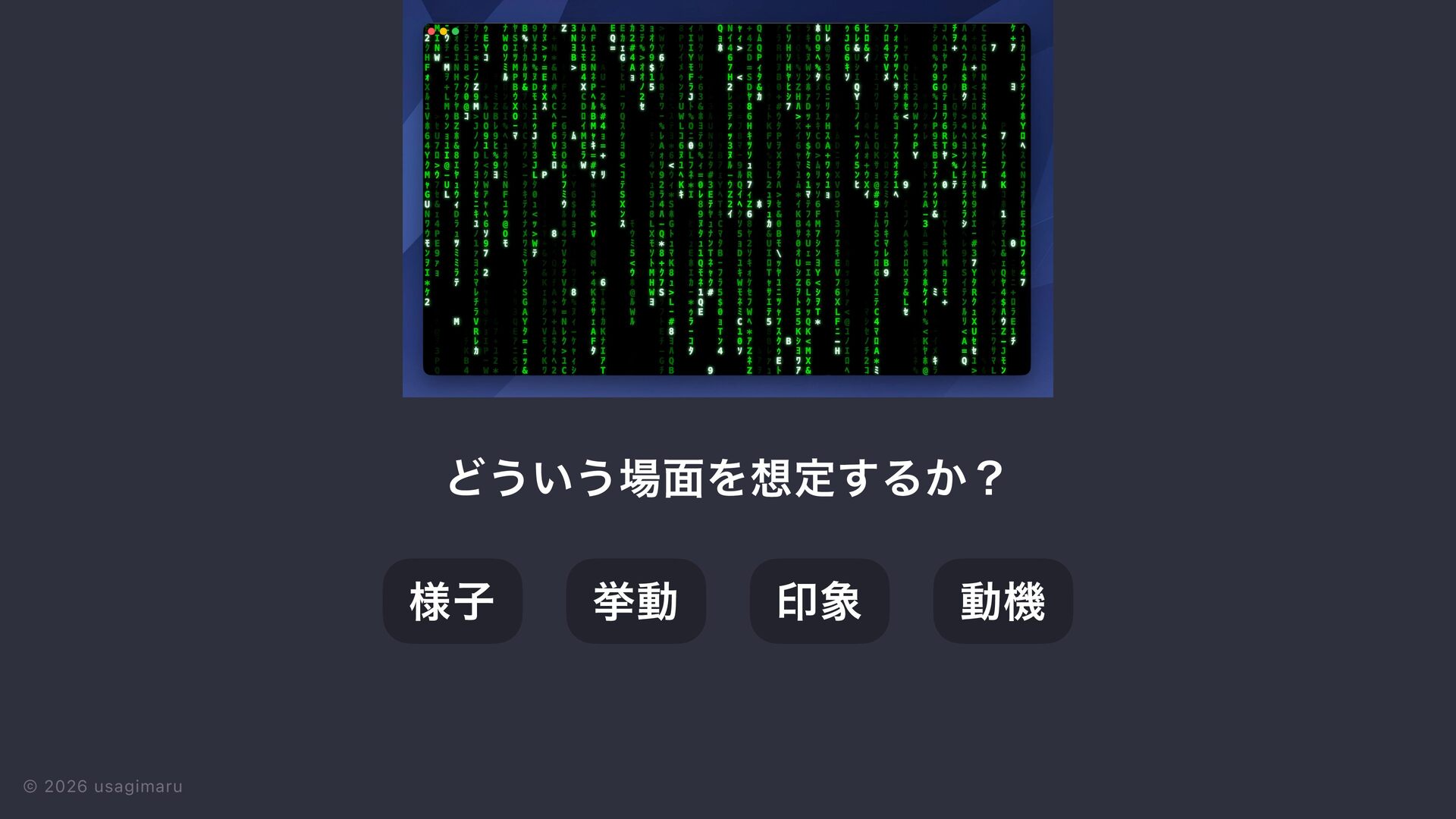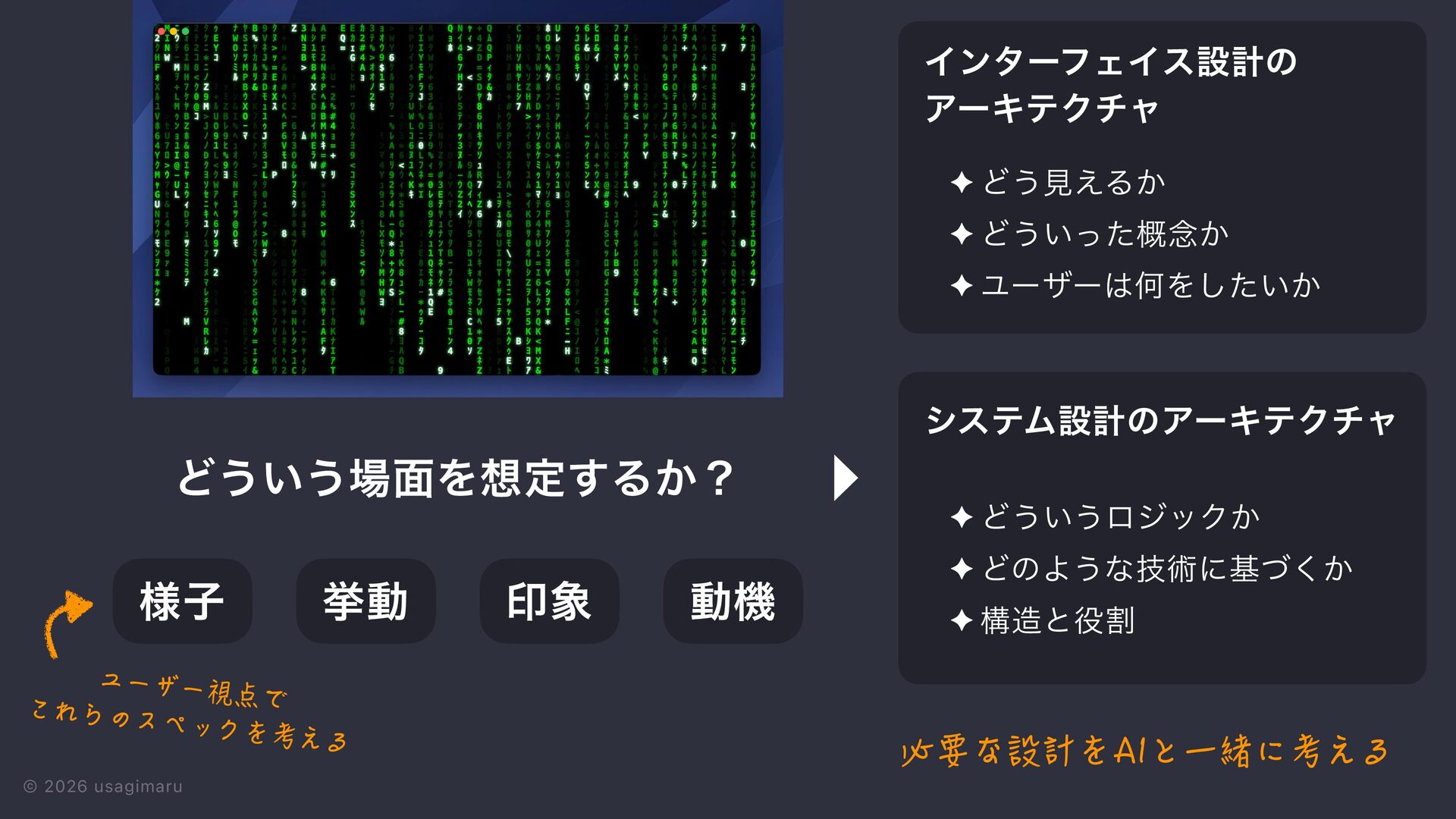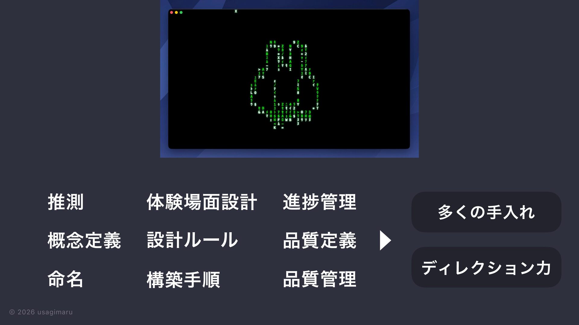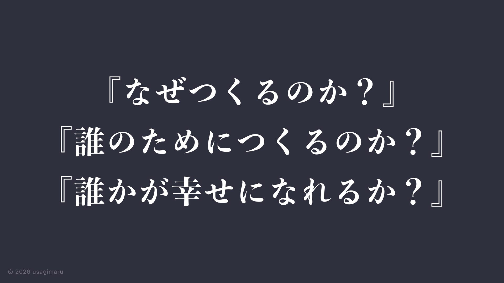 3. © 2026 usagimaru ੍࡞ ੜ੒ ମݧͷࠎ֨ Ϣʔεέʔε ίϯηϓτ ٕज़ ϩδοΫ