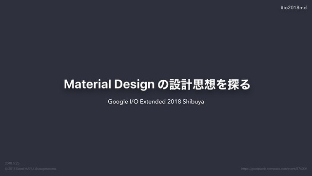 「Material Design の設計思想を探る」 Google I/O Extended 2018 Shibuya #io2018md https://goodpatch.connpass.com/event/87400/ https://twitter.com/hashtag/io2018md