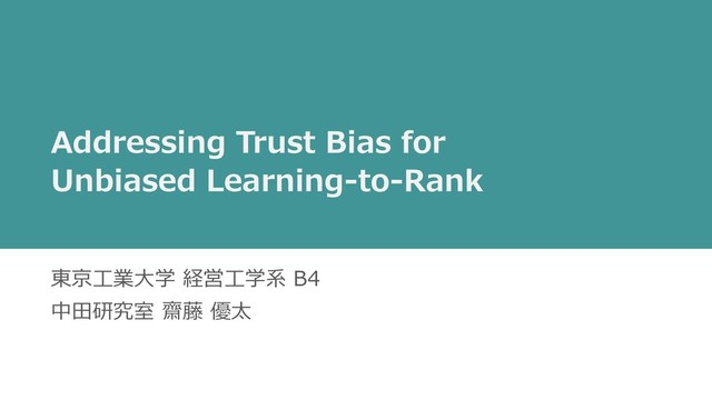 Thorsten Joachims, Adith Swaminathan, and Tobias Schnabel. 2017. Unbiased learning-to-rank with biased feedback. In Proceedings of the 10th ACM International Conference on Web Search and Data Mining (WSDM ʼ17). [Wang et al. WSDM2018]: Xuanhui Wang, Nadav Golbandi, Michael Bendersky, Donald Metzler, and Marc Najork. 2018. Position Bias Estimation for Unbiased Learning to Rank in Personal Search. In Proceedings of the 11th ACM International Conference on Web Search and Data Mining (WSDM ʼ18). [Ai et al. SIGIR2018]: Qingyao Ai, Keping Bi, Cheng Luo, Jiafeng Guo, and W. Bruce Croft. Unbiased learning to rank with unbiased propensity estimation. In The 41st International ACM SIGIR Conference on Research & Development in Information Retrieval (SIGIRʼ18). [Agarwal et al. WSDM2019]: Aman Agarwal, Ivan Zaitsev, Xuanhui Wang, Cheng Li, Marc Najork and Thorsten Joachims. 2019. Estimating Position Bias without Intrusive Interventions. In The 12th ACM International Conference on Web Search and Data Mining (WSDM ʼ19) [Hu et al. WWW2019]: Ziniu Hu and Yang Wang, Qu Peng, Hang Li. 2019. Unbiased LambdaMART: An Unbiased Pairwise Learning- to-Rank Algorithm. In Proceedings of the 2019 World Wide Web Conference (WWW ʼ19) [Agarwal et al. WWW2019]: Aman Agarwal, Xuanhui Wang, Cheng Li, Mike Bendersky, and Marc Najork. 2019. Addressing Trust Bias for Unbiased Learning-to-Rank. In Proceedings of the 2019 World Wide Web Conference (WWW ʼ19) [Fang et al. SIGIR2019] Fang, Z., Agarwal, A., and Joachims, T. Intervention harvesting for context-dependent examination-bias estimation. arXiv preprint arXiv:1811.01802, 2018. References