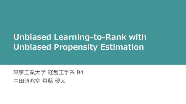 Unbiased Learning-to-Rank • 関連研究 • 提案⼿法 • 実験結果 • まとめ・QA
