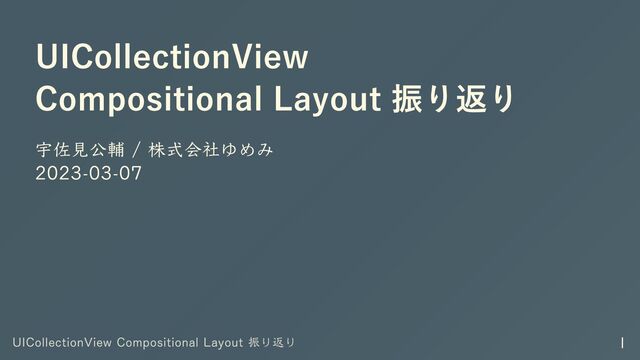 UICollectionView Compositional Layout 振り返り 宇佐見公輔 / 株式会社ゆめみ 2023-03-07 UICollectionView Compositional