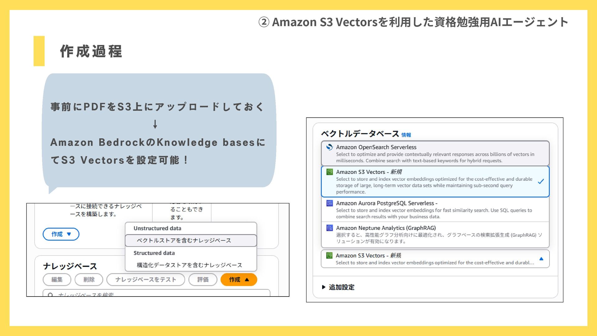 ② Amazon S3 Vectorsを利用した 資格勉強用AIエージェント