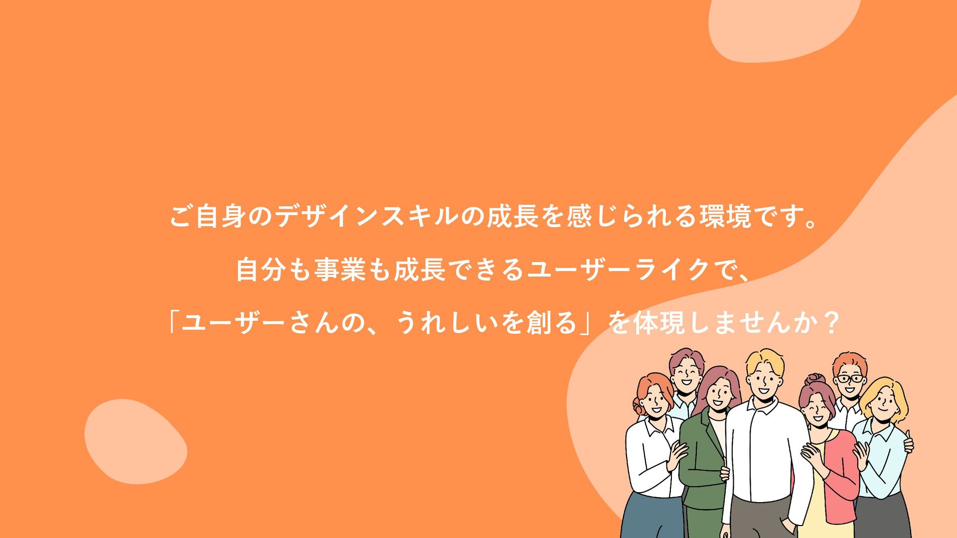 ご自身のデザインスキルの成長を感じられる環境です。 自分も事業も成長できるユーザーライクで、 「ユーザーさんの、うれしいを創る」を体現しませんか?