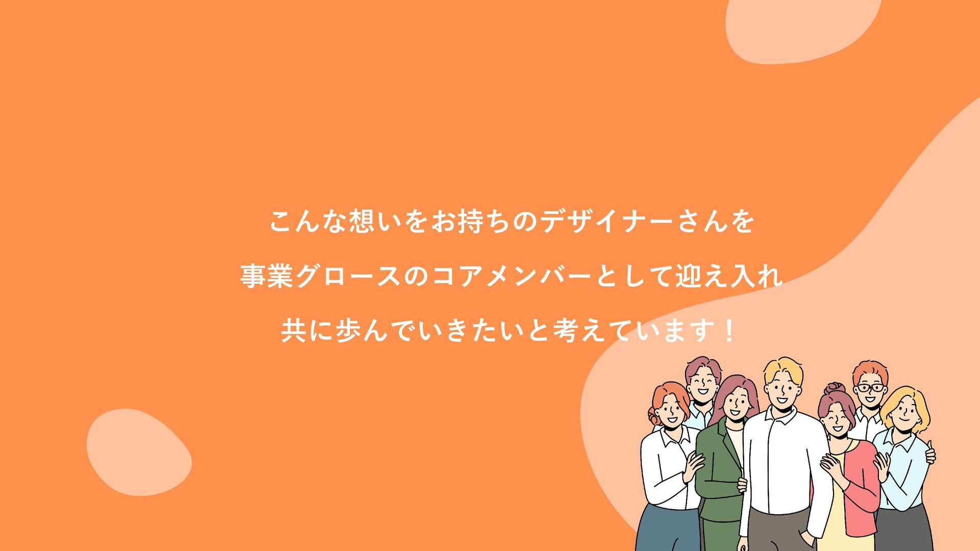 こんな想いをお持ちのデザイナーさんを 事業グロースのコアメンバーとして迎え入れ 共に歩んでいきたいと考えています!