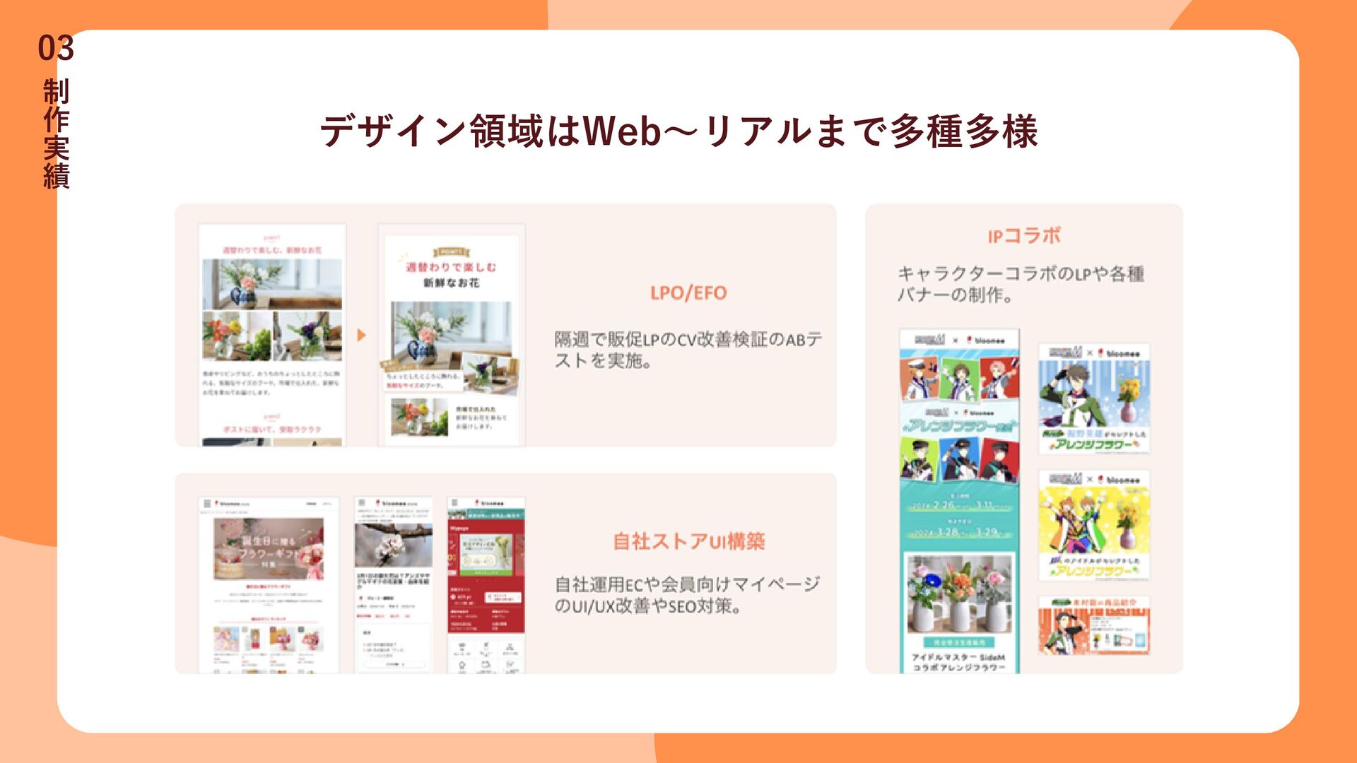 デザイン領域はWeb~リアルまで多種多様 制 作 実 績 03