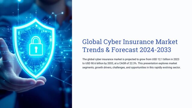 In 2023, the Global Cyber Insurance Market was valued at USD 12.1 Billion, with projections indicating a rise to USD 90.6 Billion by 2033, growing at a CAGR of 22.3%. This surge reflects rising demand for protection against escalating cyber threats across sectors.
