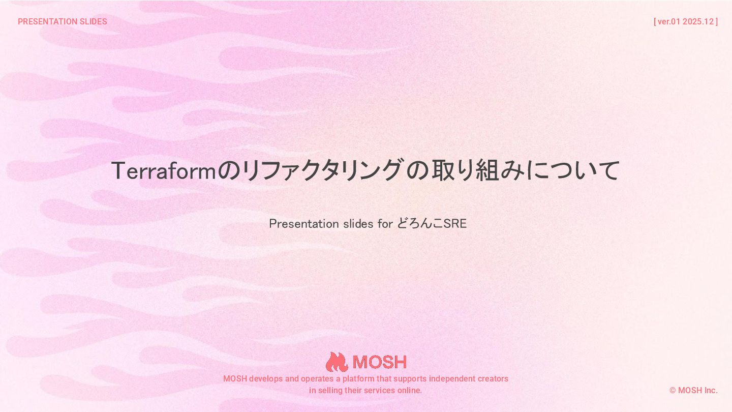 develops and operates a platform that supports independent creators in selling their services online. Terraformのリファクタリングの取り組みについて Presentation slides for どろんこSRE