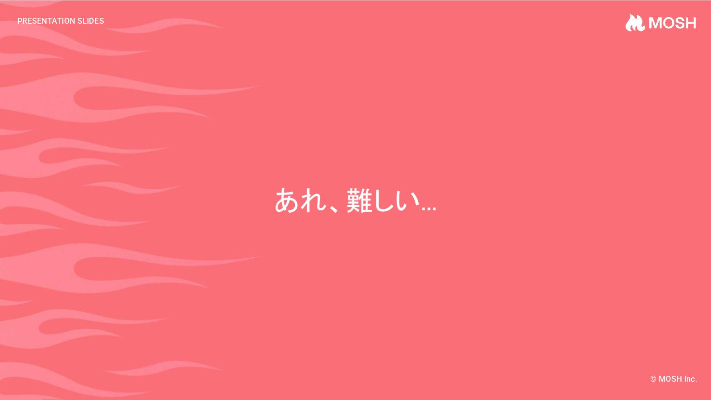 PRESENTATION SLIDES © MOSH Inc. あれ、難しい...