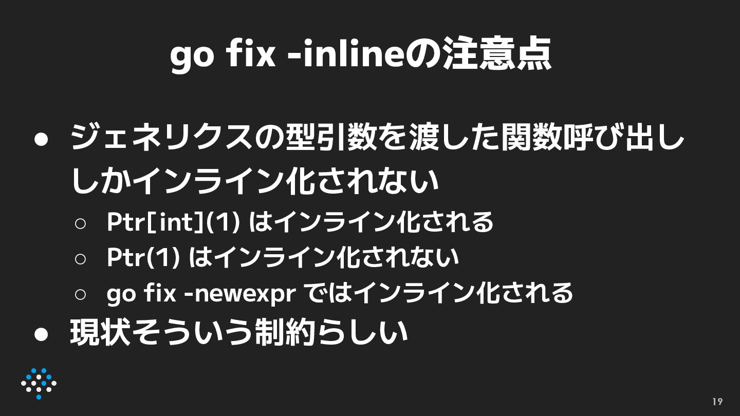 Language • Using go fix to modernize Go code - The Go Programming Language • Go 1.26で go fix が面白くなった | フューチャー技術ブログ • go fix -inlineで型引数を省略した関数呼び出しがインライン 化できないことを示すコード 87