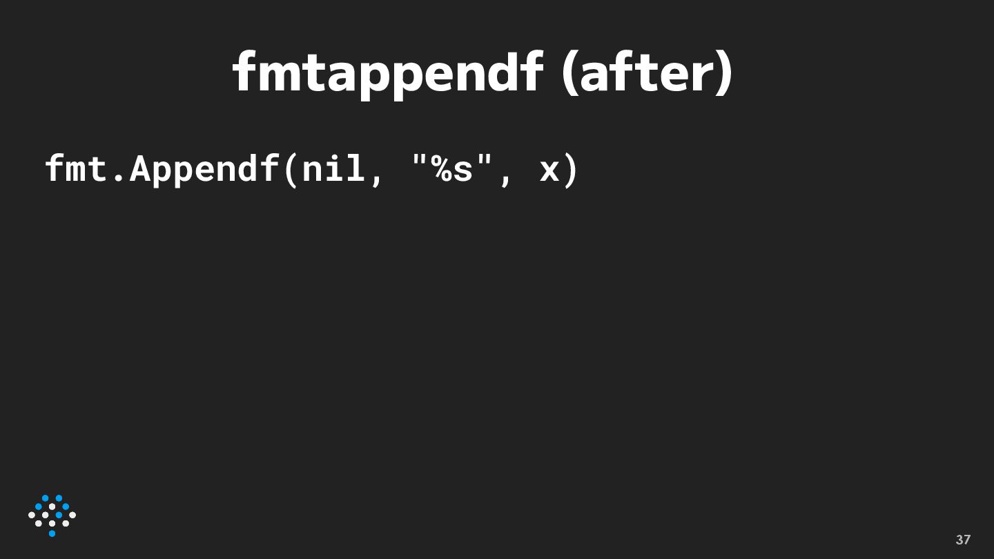 fmtappendf (after) fmt.Appendf(nil, "%s", x) 37