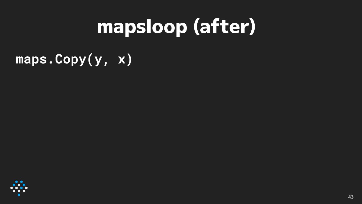 mapsloop (after) maps.Copy(y, x) 43