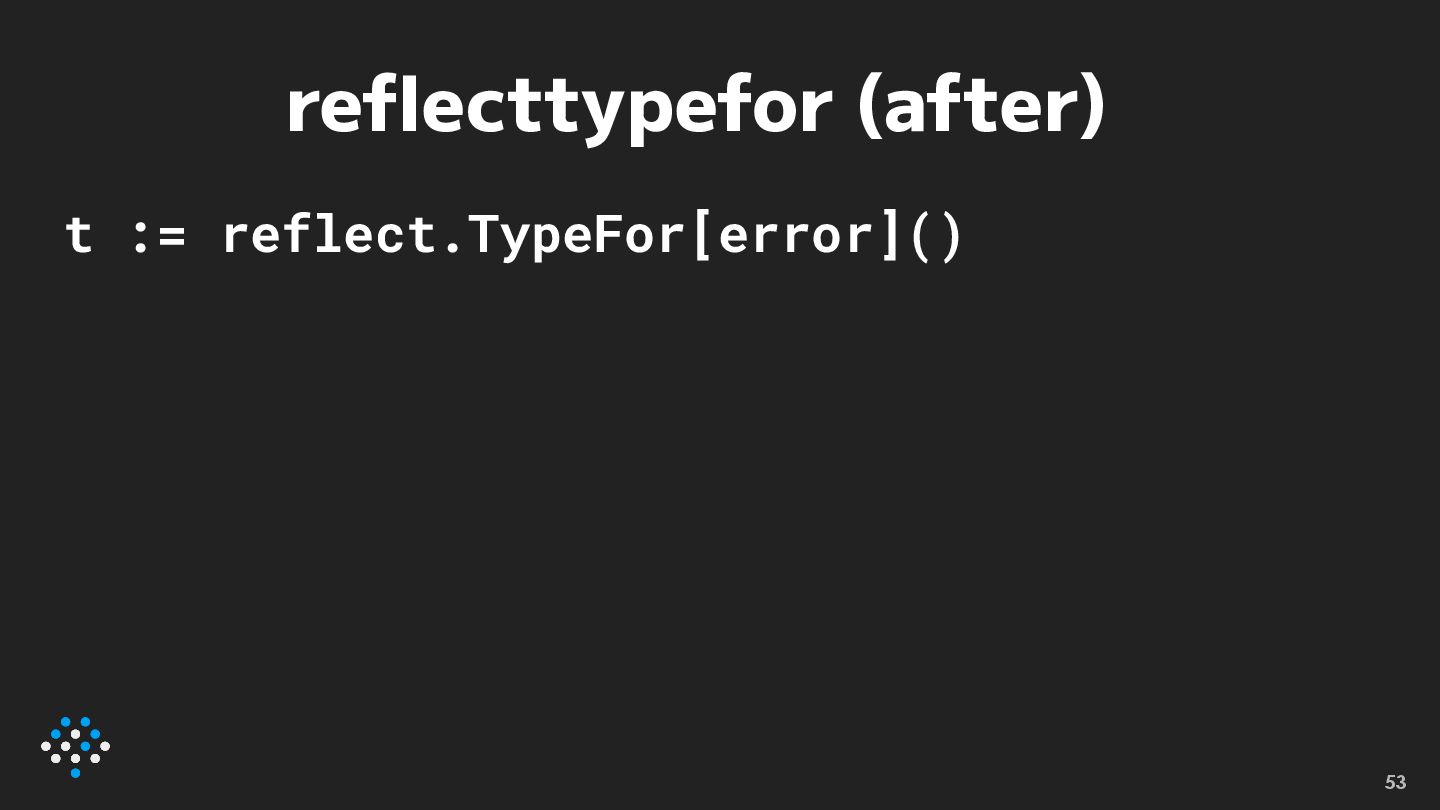 reflecttypefor (after) t := reflect.TypeFor[error]() 53