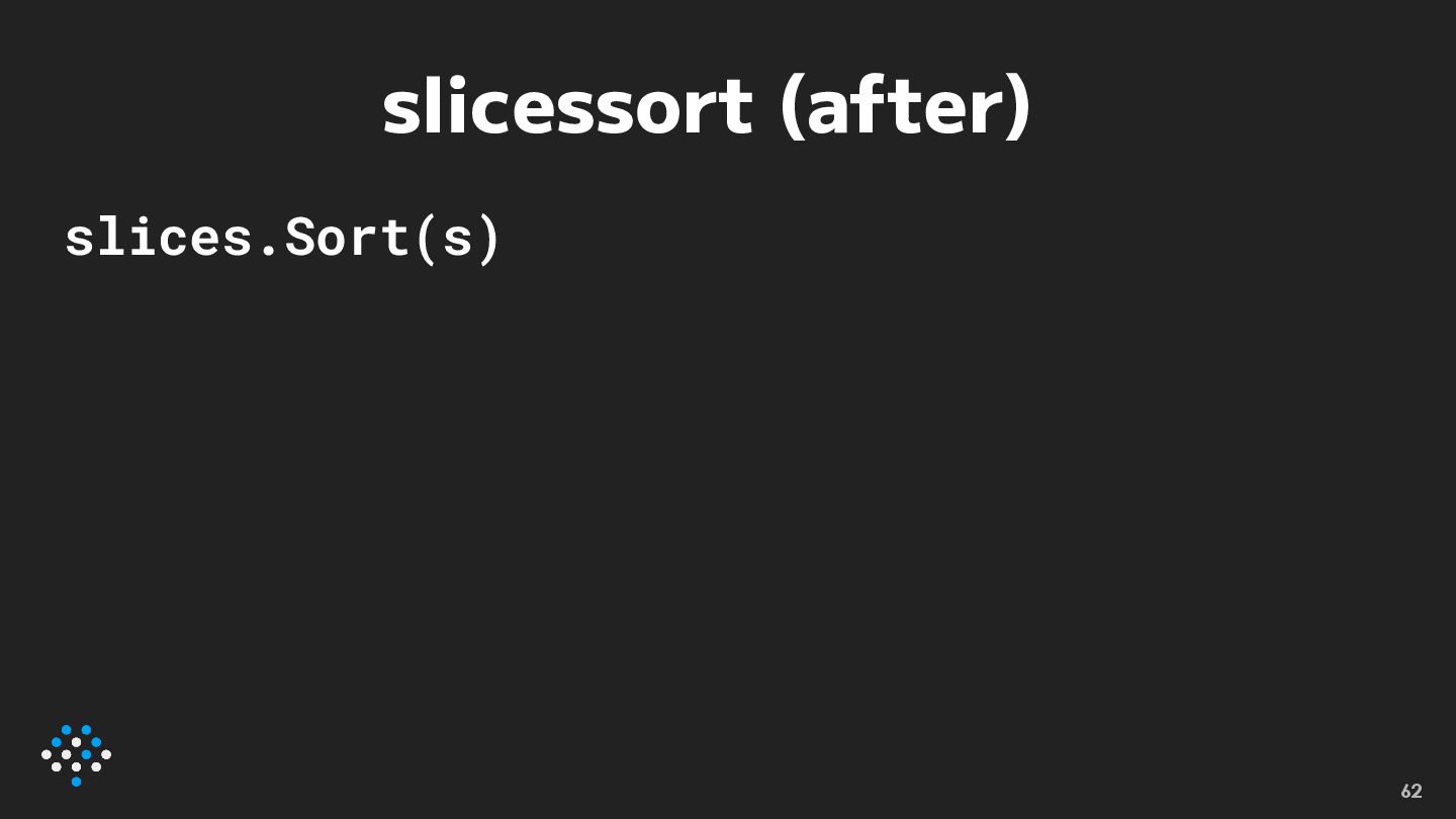 slicessort (after) slices.Sort(s) 62
