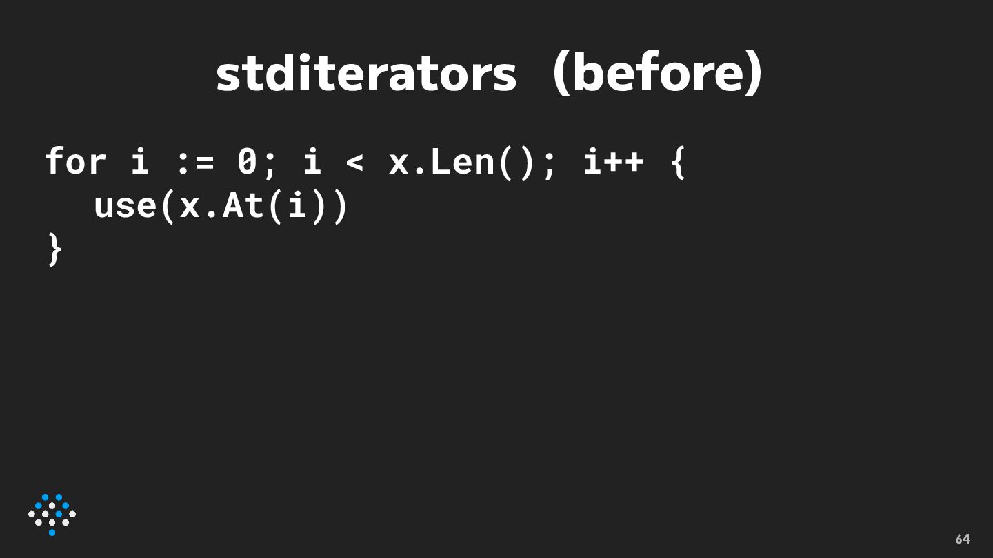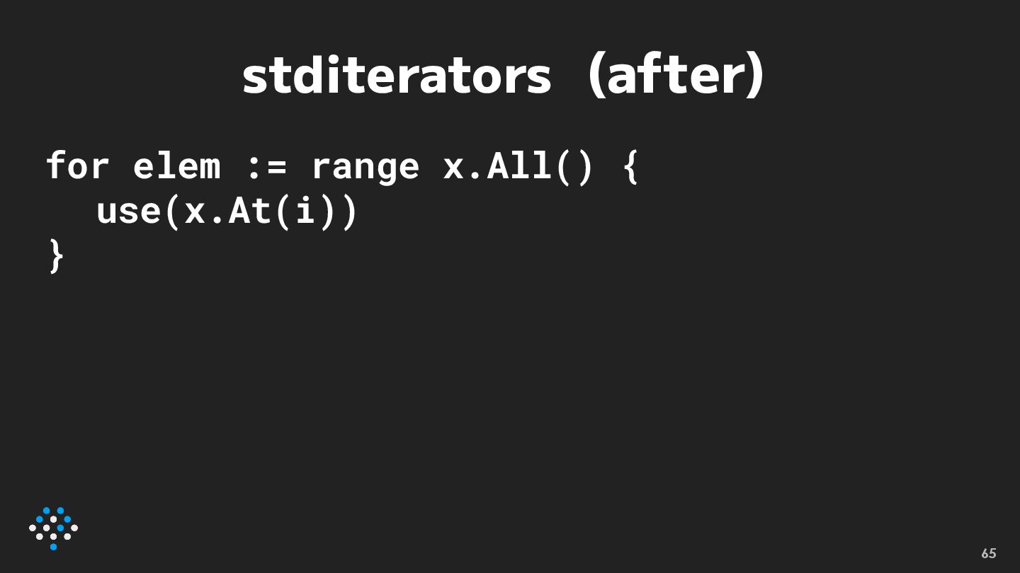 stditerators (after) for elem := range x.All() { use(x.At(i)) }