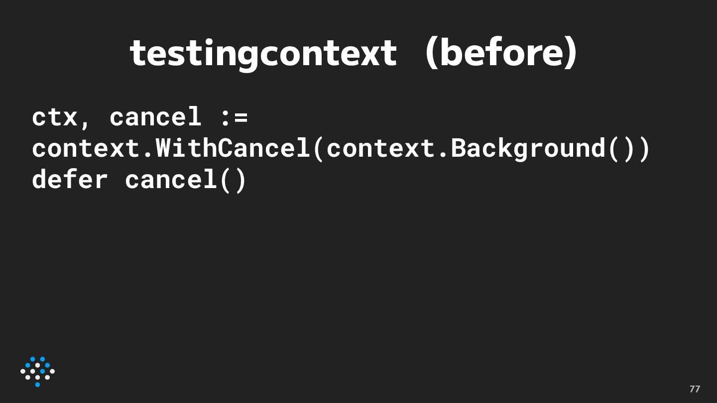testingcontext (after) ctx := t.Context() 78