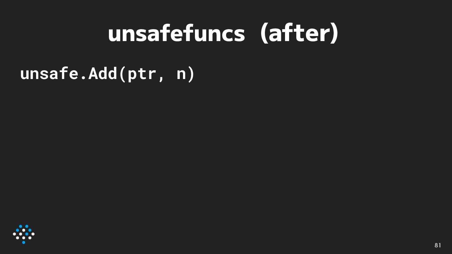 unsafefuncs (after) unsafe.Add(ptr, n) 81