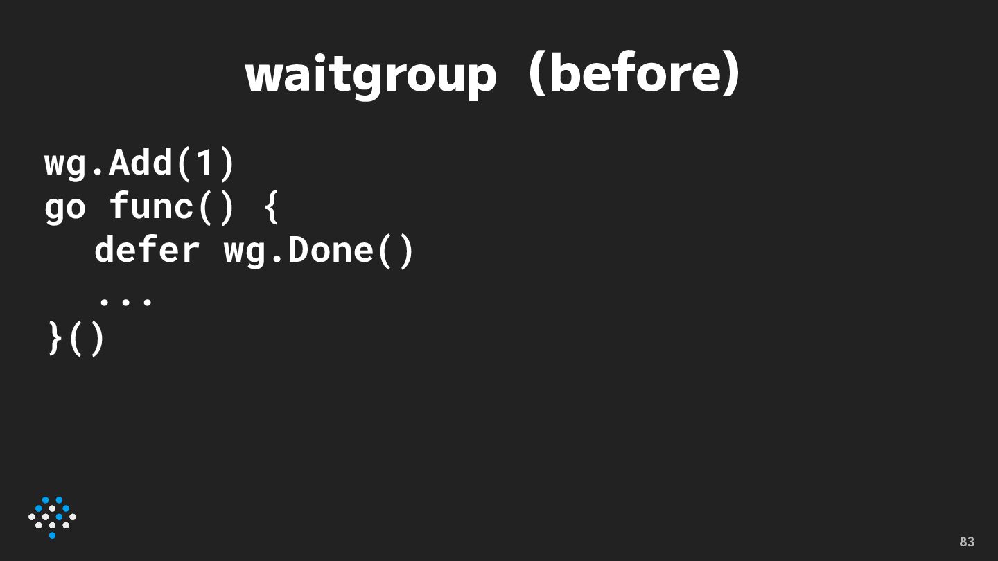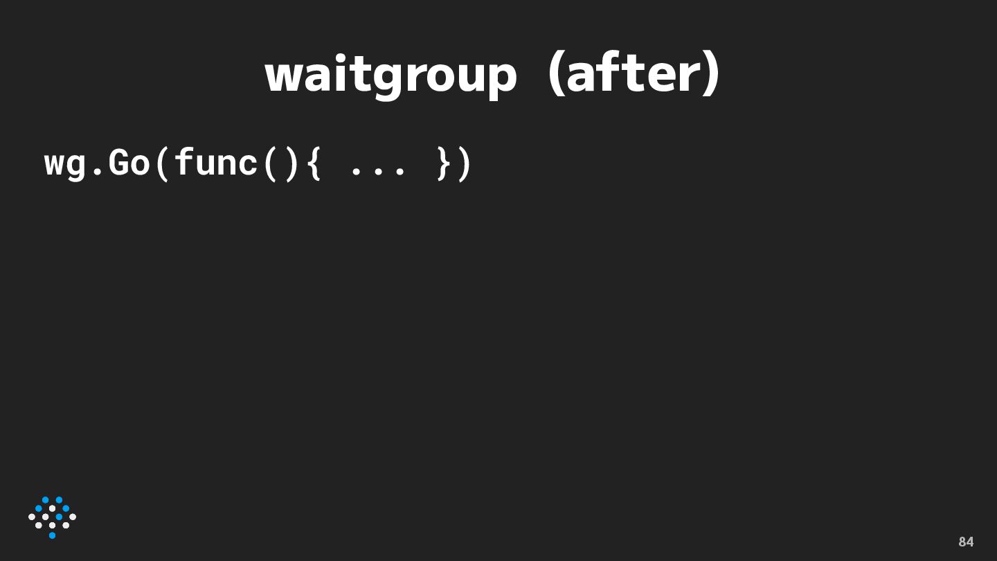 waitgroup (after) wg.Go(func(){ ... }) 84
