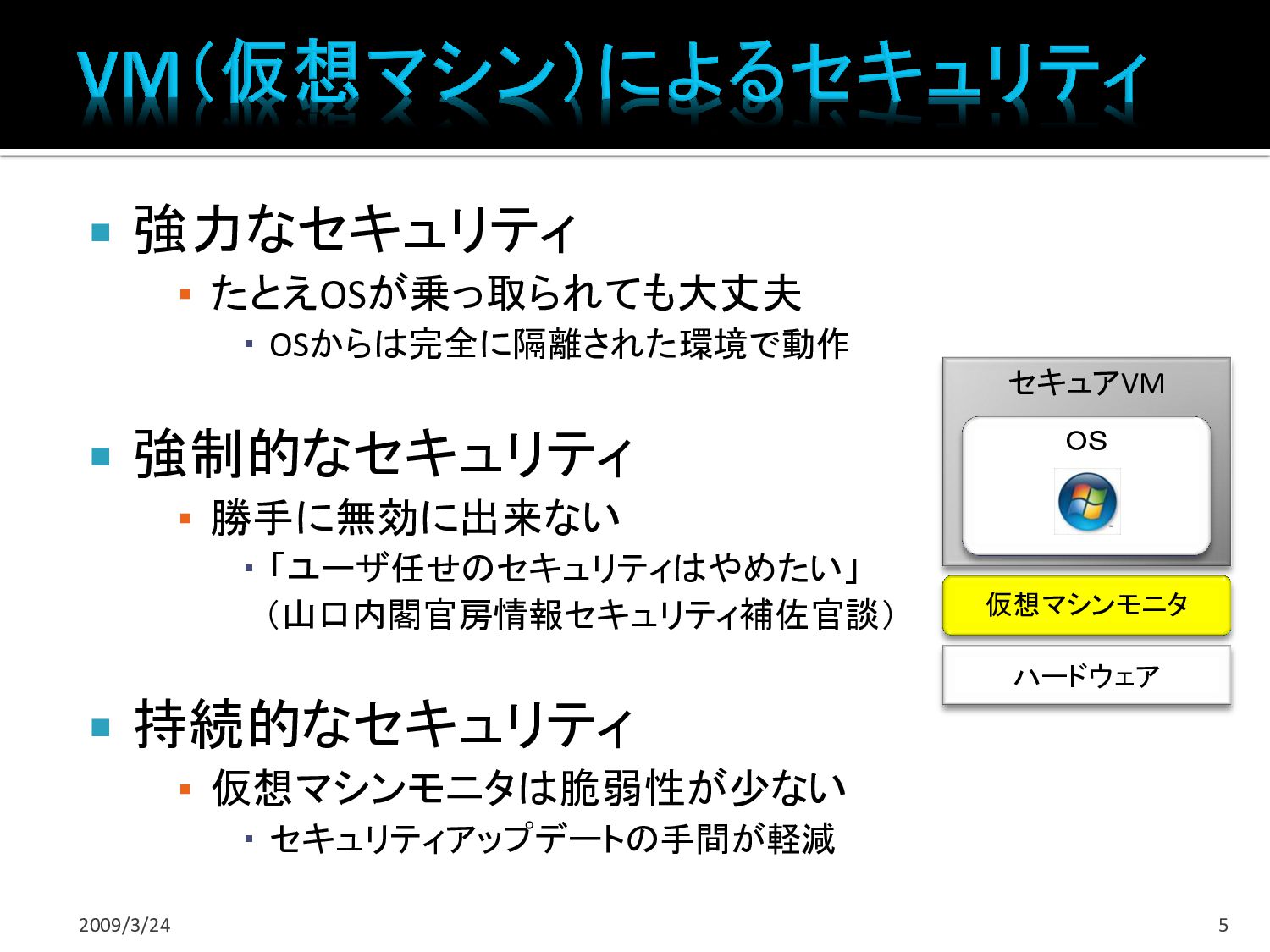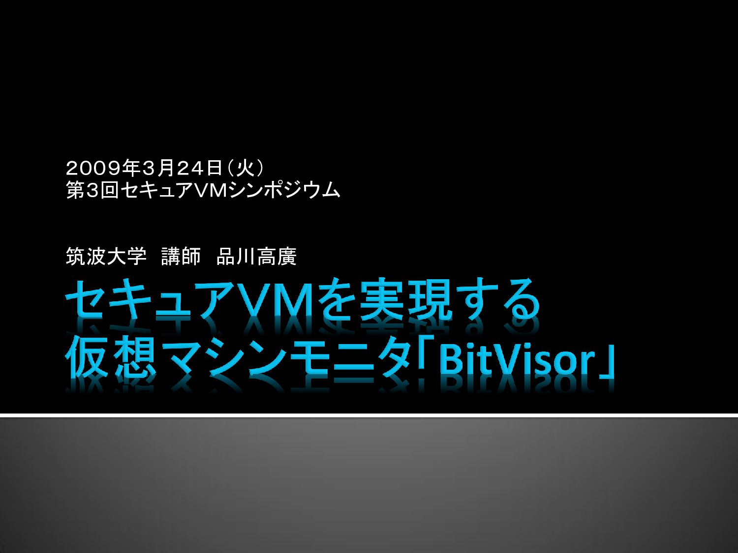 2009年3月24日(火) 第3回セキュアVMシンポジウム 筑波大学 講師 品川高廣