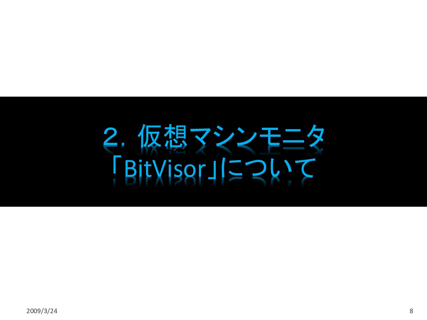 2.仮想マシンモニタ 「BitVisor」について 2009/3/24 8