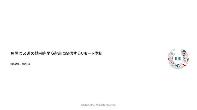 © UUUO Inc. All rights reserved. 魚屋に必須の情報を早く確実に配信するリモート体制 2022年9月28日