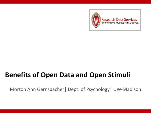 Vilas Research & Sir Frederic Bartlett Professor University of Wisconsin-Madison @GernsbacherLab I’ve become a proponent of Open Data and Open Stimuli, and more generally replicability and transparency in research. Of course, we all know that