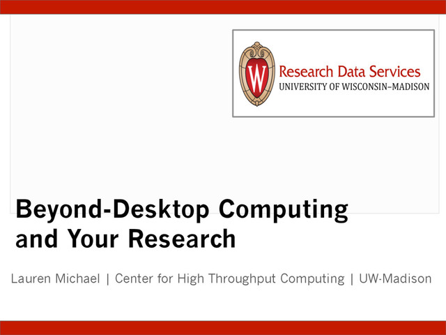 for High Throughput Computing (CHTC) ¡ Specialized Services ¡ In campus units (e.g. Biochemistry, WID, etc.) ¡ Serving broader communities (e.g. Social Sciences Computing Cooperative, Computer-Aided Engineering, etc.) ¡ Off-Campus ¡ XSEDE – NSF-funded HPC clusters (by proposal) ¡ National Center for Genome Analysis Support (NCGAS) ¡ many others contact [email protected] for more details