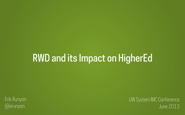 Erik can be found talking Web at WeedyGarden.net and conveying ND.edu specific information on the ND.edu blog. He can be found on Twitter at @erunyon.