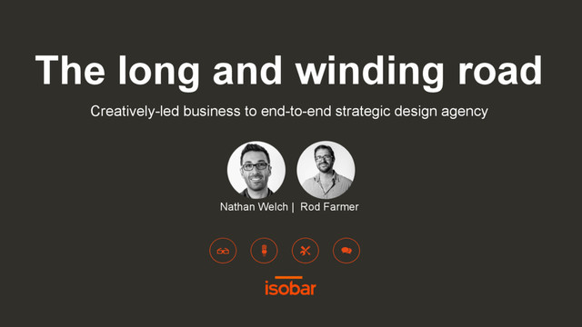 In this presentation, Rod Farmer and Nathan Welch will share their journey in transforming a large organisation from a creatively-led business into an end-to-end strategic design agency, led by human-centred design practices.