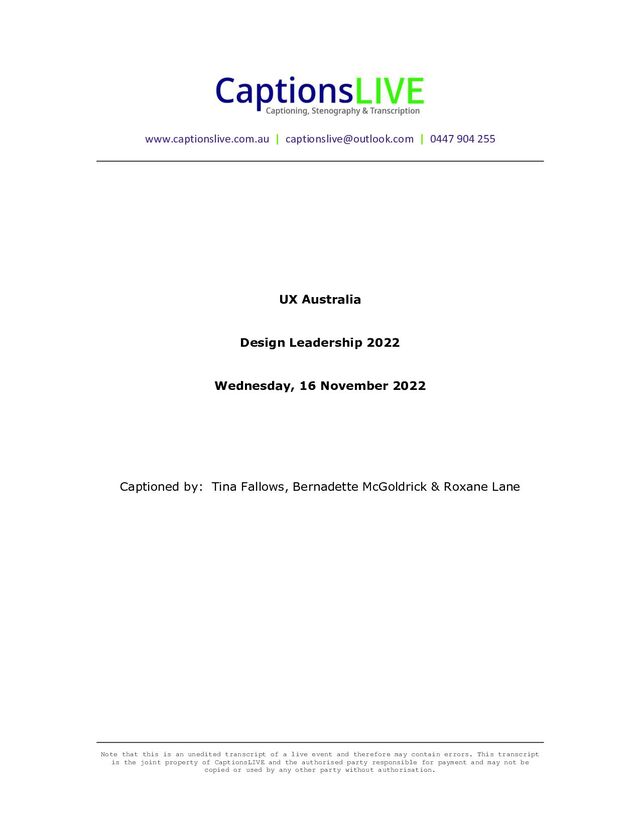 i f a li e e e a d he ef e ma c ai e . Thi a c i i he j i e f Ca i LIVE a d he a h i ed a e ible f a me a d ma be c ied ed b a he a i h a h i a i . Page 121 he , he e' fi e i f h a e a g d e he e, he he i i e i g eadi g a jec , d i g he hi g, i i d e ' a e , ha d e ' a e he ea g d. Yeah, I g e e hi g e e e cha i g ab he he da , hich ea i e i ab ha i he c ai d e e c ai i g. A d f h e ha i did ' a e e e e aigh a a . If I c e i , j i . I a defi i e c ai i g d he I hea d e f ha feedbac a d he b i e a , f a i , hea ache - hea ache, ha e e i a , b I a e g ded i he fac , I a ' i ed ff beca e f e, I a ea a g a d e beca e f ea , beca e I he eade hi ea ed hei a ff f ha . We j -- e did ' fig e h e c d ' ge h gh j e . A d he bigge diffe e ce i d f Ja e a a i g ab i ca c ai a i e b c e be e ge ge he i h he ea a d fig e h fi ha . A d if I a e e hi g a a f ha i j e bed hi e i e ce idea ab , eah, ca be f a ed, ca ha e he fee i g , b i i ab , i i ab he ea , a d ' e j g ee , g ee g i g. JANE: S , e a a i g a ed a ach ha e i ca ed - e i e eade hi ea . We' e ched a b ch f he ie a d idea a d e' e g i g a h he ge he i a gia e e i e f ea a d e i e b i e be i e f a ab h e g ab eade hi i a ca c e e diffe e a a d h hi c ea e a a f eade e e gi g. O a . (La gh ). S he fi hi g, I hi , I g e I h gh ab a ac a a d if a ic e f ha b i e a , he ef igh e e i , e f he hi g e ha e a Ma e G i hi i ha he e a e a e ge , be acc ab e f e hi g. Acc ab e i
