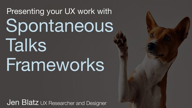 We know that sharing our design decisions or presenting the value of our user research to stakeholders can sometimes be a challenge. Spontaneous Talks Frameworks have been around for years. They are often taught at universities and are used to help people think of answers or tell stories fast and smart. Jen is going to teach you a few Spontaneous Talks Frameworks so you can use them when presenting your work, answering tough questions or simply telling your stories. Applying these simple frameworks can help a person avoid anxiety by quickly organizing a thought, and moving forward to articulating that thought in a cohesive and eloquent manner.